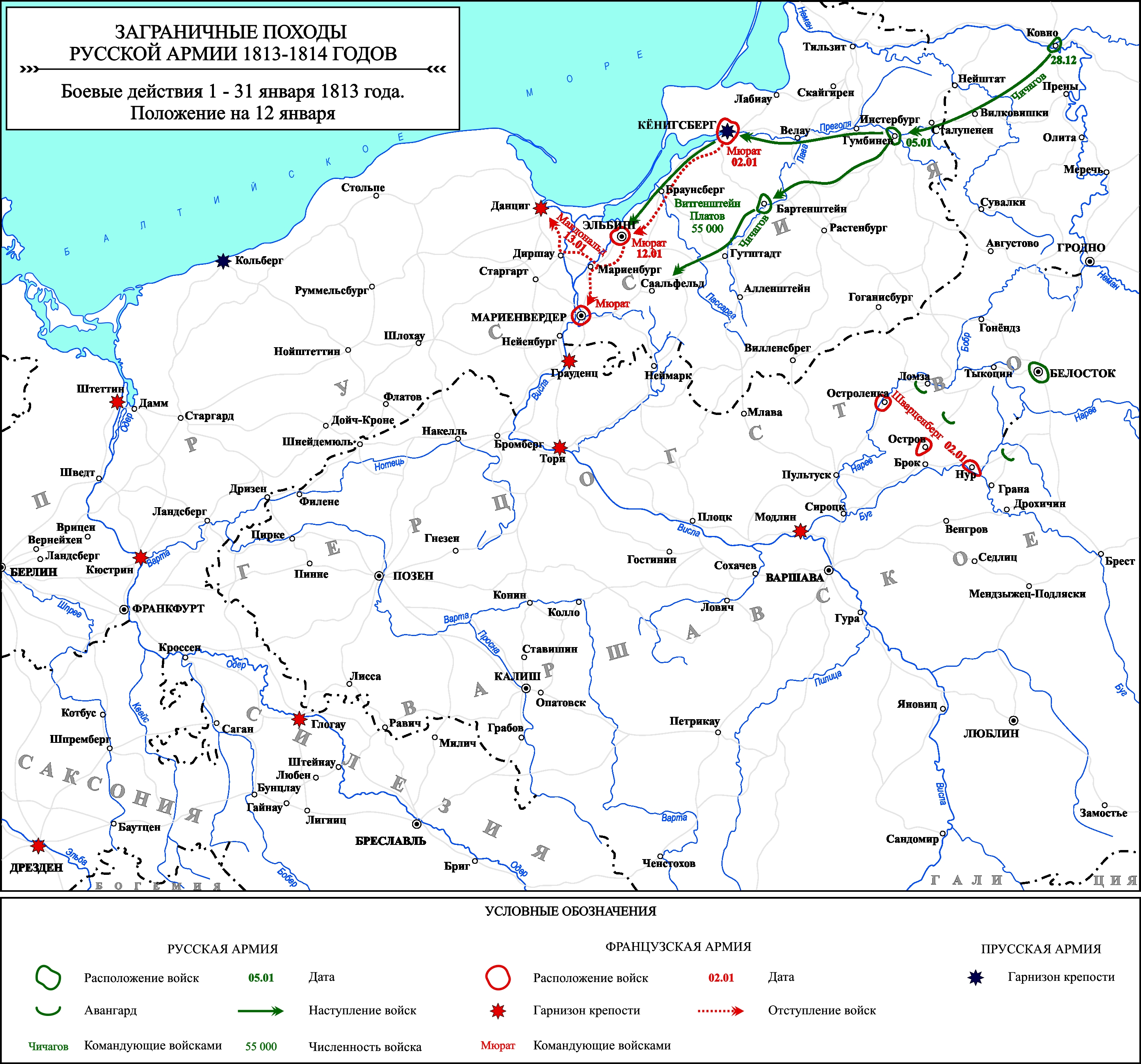 Заграничные походы Русской армии 1813-1814 гг. Положение на 12 января 1813 г.