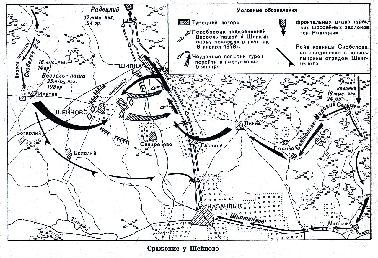 Карта: Схема действий русских войск в сражении у Шейново в 1878 г.