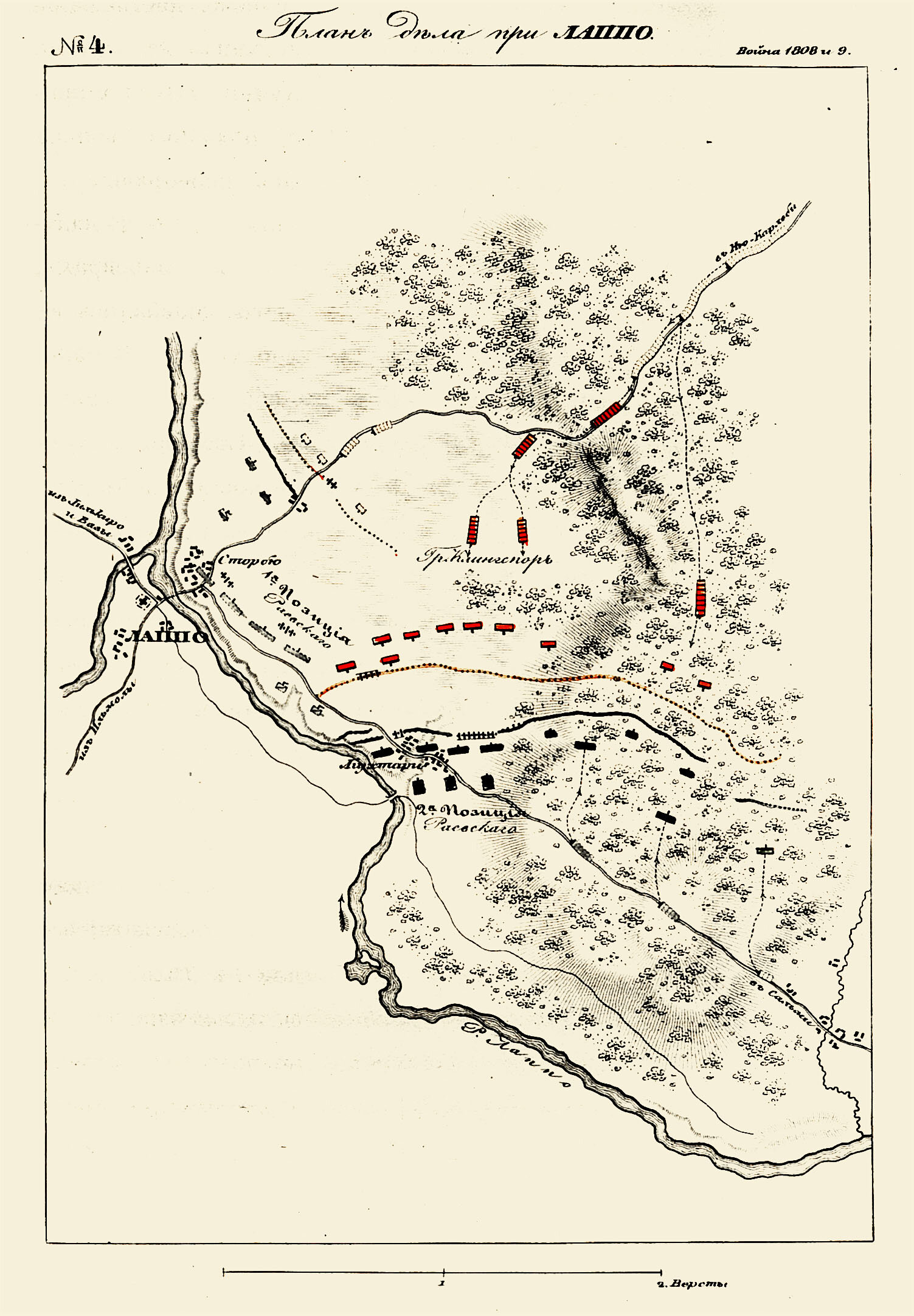Авангард Раевского повел атаку на селение с фронта, а две роты Великолуцкого полка под начальством майора Платонова пошли обходом в тыл. Шведы были сбиты со своей первоначальной позиции; атака же Платонова в тыл была неудачна, и сам он ранен. Эрнрот снова сосредоточил свои силы на новой позиции, намереваясь здесь обороняться до крайности, но, получив донесение о новом обходе русских, счел за лучшее отступить. Подоспевший начальник бригады, Кронстедт, видя свои батальоны в полном отступлении, отвел их к проходу Ала-Хярмя, где была крепкая с фронта теснина. Но наши войска удовлетворились легко доставшимся им Лаппо.