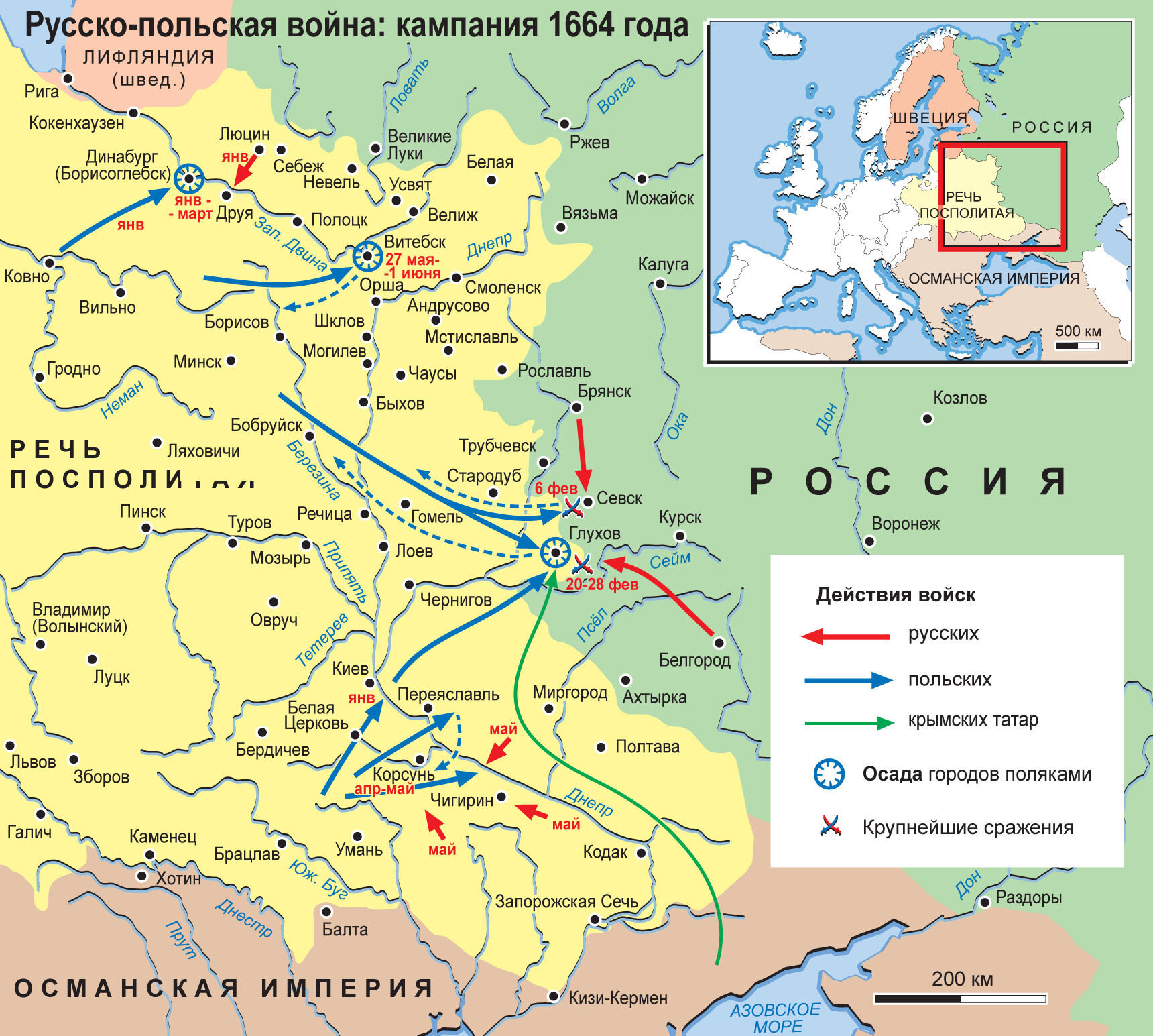 Карта: Русско-польская война 1654 – 1667. Кампания 1664 г.