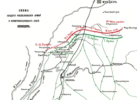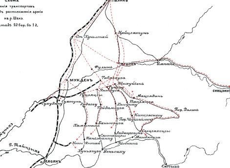 Схема ближнего тыла во время сражения на реке Шахэ
