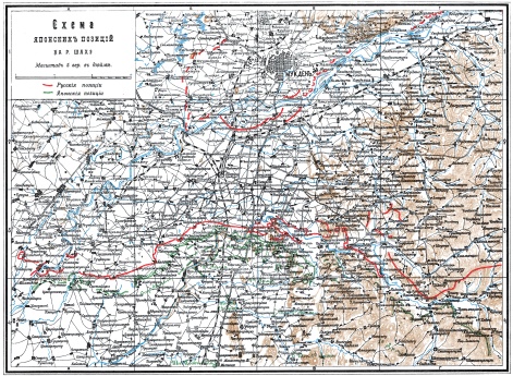 Схема японских позиций на реке Шахэ