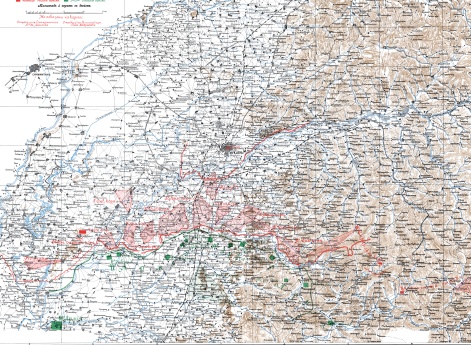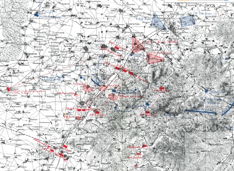 Район военных действий второго периода кампании со схематическим показанием важнейших горных хребтов