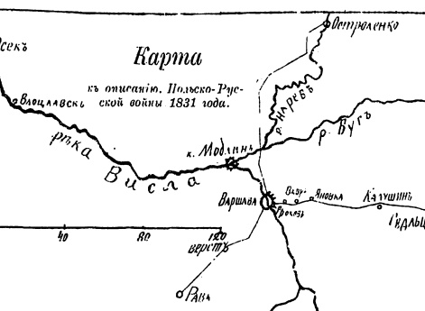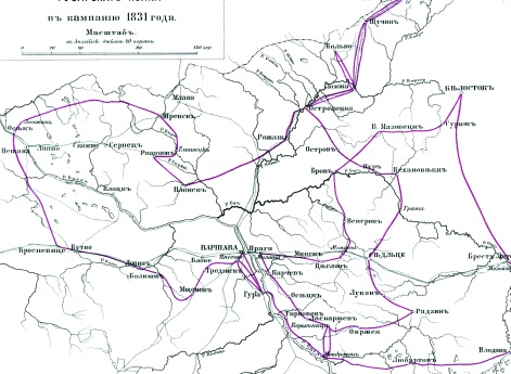 Карта движений Лейб-гвардии Литовского полка в кампанию 1831 года