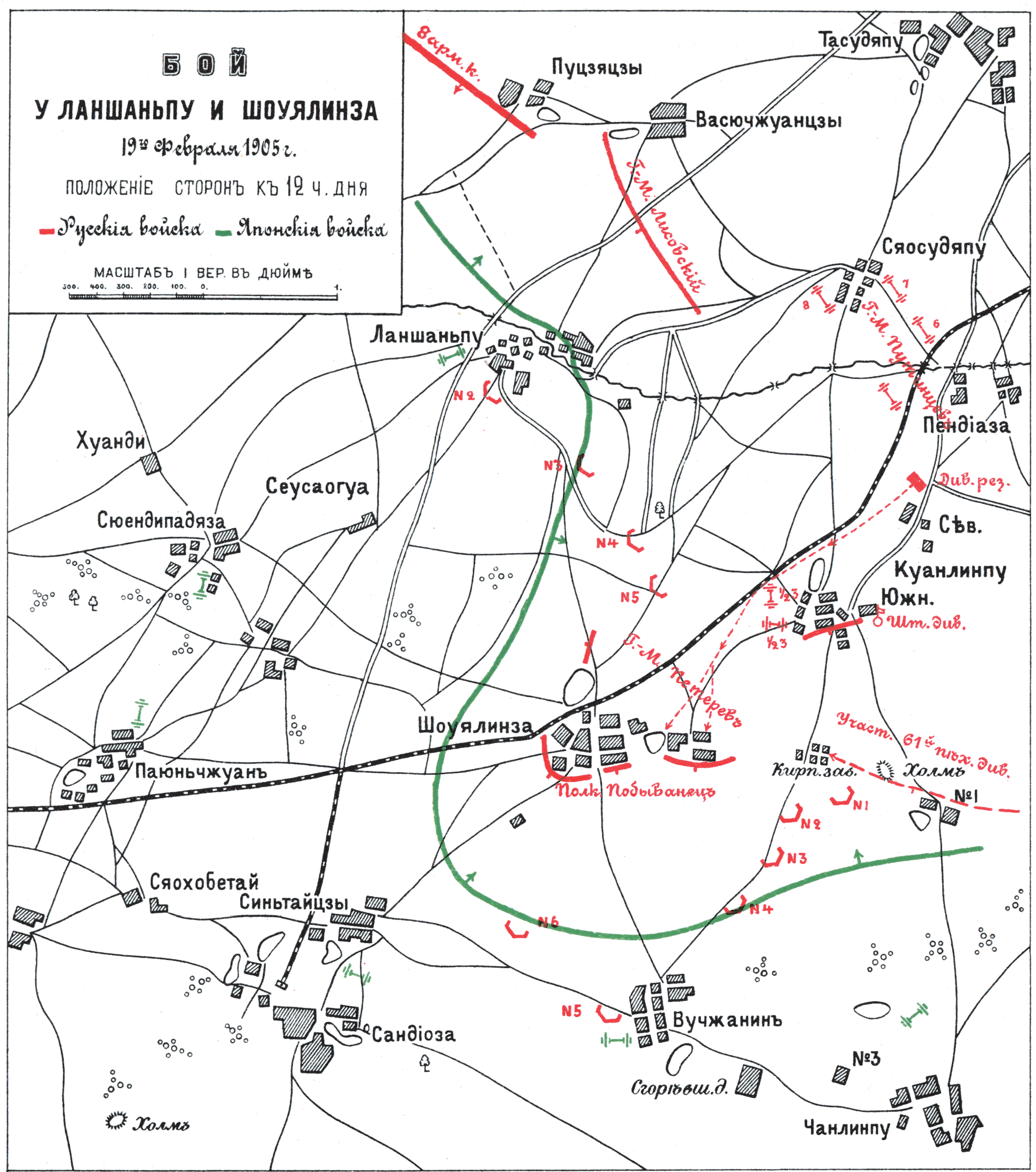 Бой у Ланшаньпу и Шоуялинза 19 февраля 1905 года. Положение сторон к 7 часам вечера