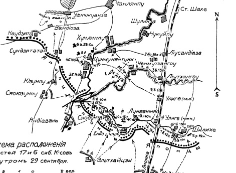 Схема расположения частей 17 и 6 Сибирских корпусов утром 29 сентября
