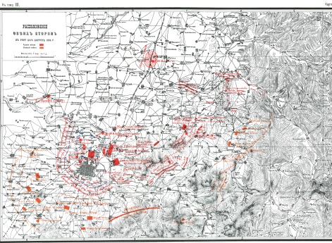 Сражение при Ляояне с 26 августа по 5 сентября 1904 года с показанием приблизительного положения обеих сторон