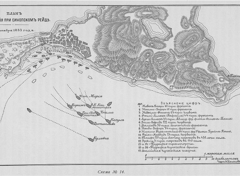 Синопское сражение (набросок английского офицера, сделанный через день после сражения)