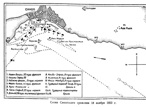 Русская эскадра обнаружила и блокировала турецкую флотилию в бухте Синопа, приготовившийся для высадки крупного десанта в районе Сухума и Поти. В последовавшем сражении турецкая флотилия была уничтожена на рейде, за исключением парохода «Таиф». Осман-паша, командующий турецким флотом, пленен.