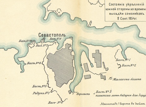 Состояние укреплений южной стороны ко времени высадки союзников 2 сентября 1854 года