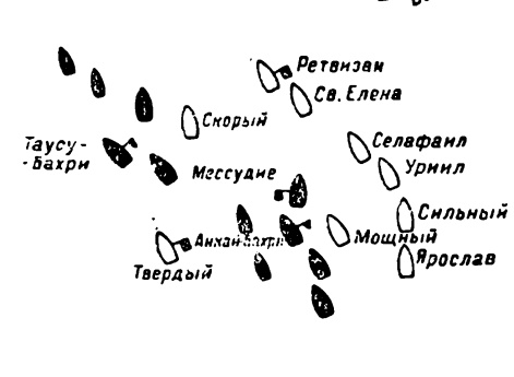 Средиземноморская эскадра: линейные корабли «Твердый», «Ретвизан», «Сильный», «Рафаил», «Мощный», «Скорый», «Селафаил», «Ярослав», фрегат «Венус», шлюп «Шпицберген». Десант: два батальона Козловского пехотного полка, 270 албанских стрелков, шесть орудий.