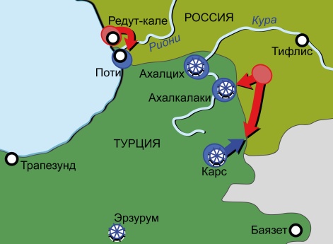 Кавказскому театру отводилась вспомогательная роль. Здесь русским войскам предстояло не допускать наступления турецких войск на Грузию и их соединения с персидскими войсками.