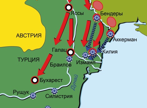 На европейском театре военных действий Россия стремилась отодвинуть границу от р. Днестр до р. Прут и распространить свой контроль на румынские княжества.