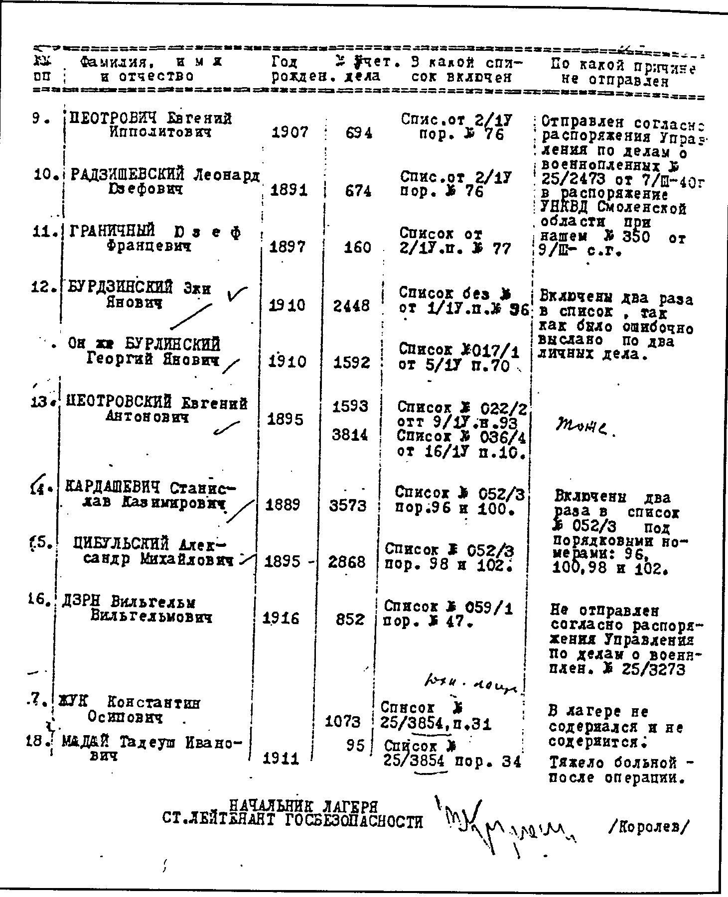 Воспроизв. по: Катынь. Пленники необъявленной войны. Документы и материалы. / Под редакцией Р.Г. Пихои, А. Хейштора.