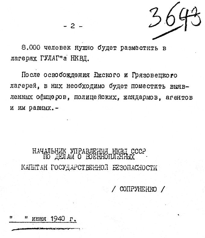 Воспроизв. по: Катынь. Пленники необъявленной войны. Документы и материалы. / Под редакцией Р.Г. Пихои, А. Хейштора.