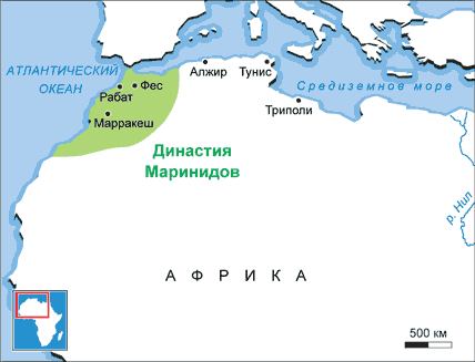 «Начало своей династии Мариниды относили к 1195 (591) г. и действительно с этого времени владели горными округами Марокко; но только в 1269 (667) г. в их руки перешла столица Алмохадов. Скоро после 793 (1396) г. они присоединили к своему государству владения Зиянидов в западной Алжирии. В 1470 г. у них отняли престол их родственники Ват'асиды».