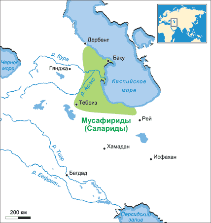 «Мусафириды или Салариды. ранее 916 — около 1090 (ранее 304 — около 483). Дейлем с центром в Таруме и Самиране, позже в Азербайджане и Арране