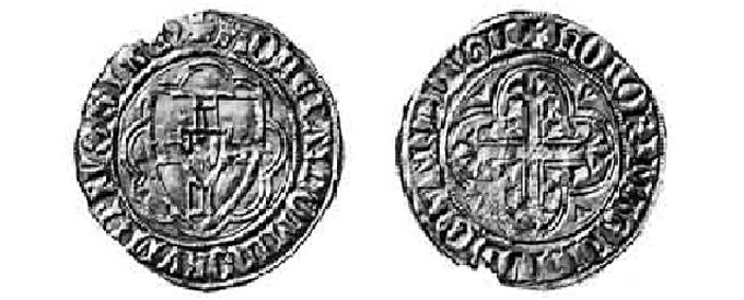 Шиллинг Тевтонского ордена времен правления Великого магистра Винриха фон Книпроде (1351 – 1382).